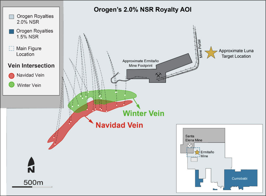 Paddy Nicol, Orogen’s CEO commented, "Exploration and mineral resource expansion at Ermitaño has continued to deliver strong results over 2025. In particular, the Navidad vein system, where Orogen holds a 2% NSR royalty, drove the largest percentage increase in Inferred Resources across First Majestic’s operations. This achievement, along with the rest of the resources at Ermitaño and the Santa Elena mine complex, provides meaningful life-of-mine extension possibilities. For 2026, First Majestic estimate 78,000 metres of drilling across the Santa Elena mine complex including Navidad and the greater Ermitaño concession." 3